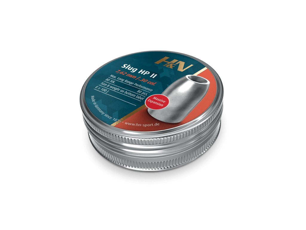 H&N Slug HP II .30cal v priemere 7,62 mm rozširuje rozsah kalibrov slugov a je určený pre lov na veľké vzdialenosti a terčovú streľbu s vysokovýkonnými vzduchovkami.